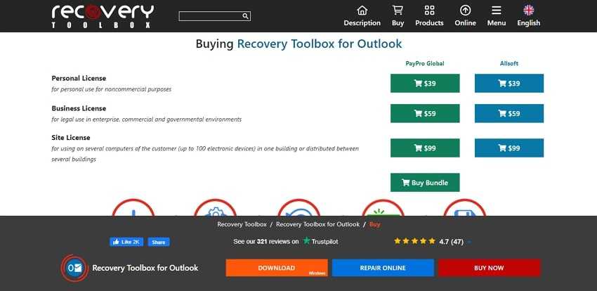 Check Out Recovery Toolbox for Outlook: $49.90 /