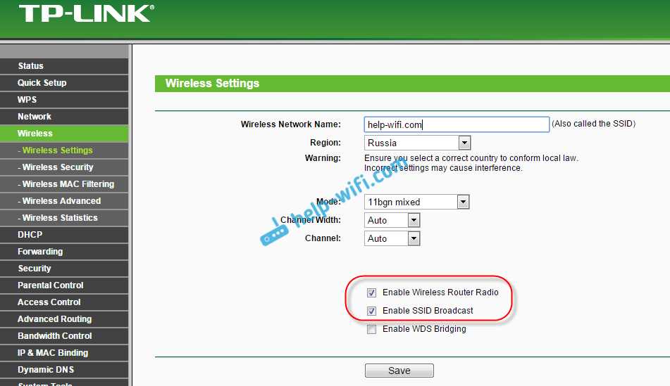 (Включить широковещание SSID). Если нет, то установите, и нажмите кнопку Save