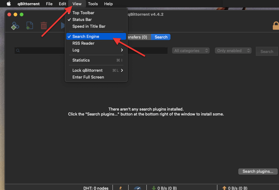- Чтобы активировать поисковую систему qBittorrent, вам нужно будет установить поисковый плагин qBittorrent. Перейдите и нажмите на “Поисковые плагины… ” > “Проверить обновления.”