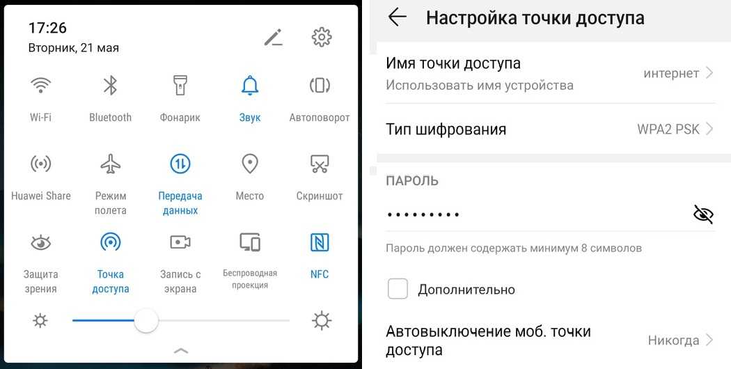 Еще один способ, как использовать телефон как модем — раздать интернет по Wi-Fi. В этой статье мы подробно рассказывали, как создать точку доступа на Android-смартфоне. Все очень просто — на большинстве моделей достаточно открыть шторку меню и выбрать пункт «Точка доступа».
