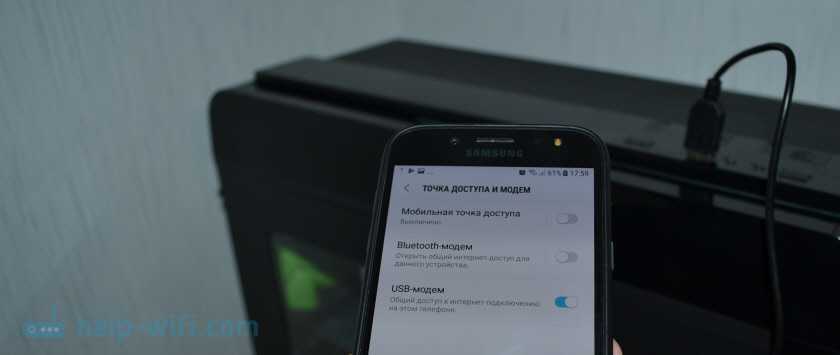 На телефоне заходим в настройки, в раздел «Подключения», дальше переходим в «Точка доступа и модем» и включаем «USB-модем» (общий доступ к интернет-подключению на этом телефоне) .