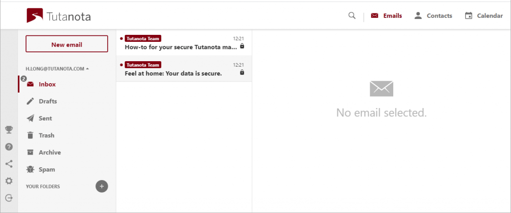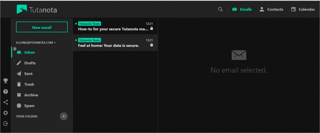 When you do get to use Tutanota, the first thing you’ll see is something like this.