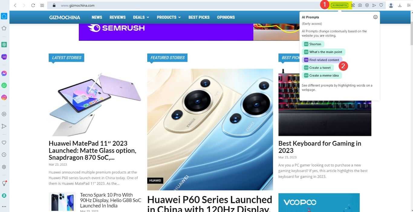 6. Это включит подсказки AI в браузере Opera. Теперь выберите любой текст в Интернете, и вы начнете ИИ подсказывает мгновенно.