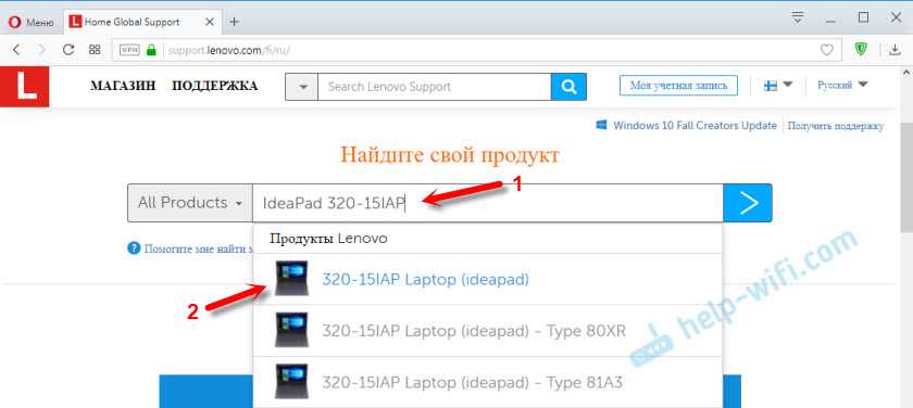 В строке поиска пишем модель своего ноутбука только без «Lenovo». И выбираем наш вариант из списка.