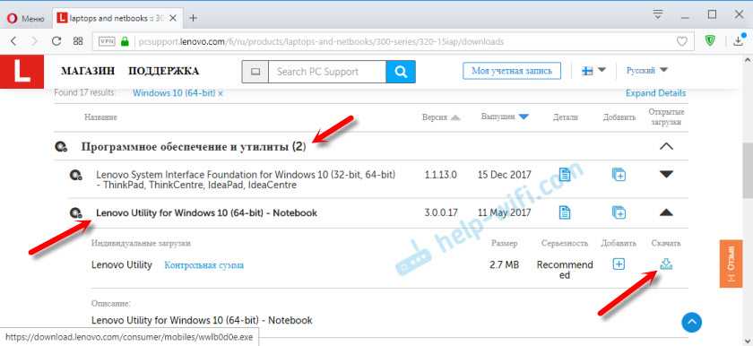 В моем случае, сразу доступа для загрузки утилита «Lenovo Utility for Windows 10».