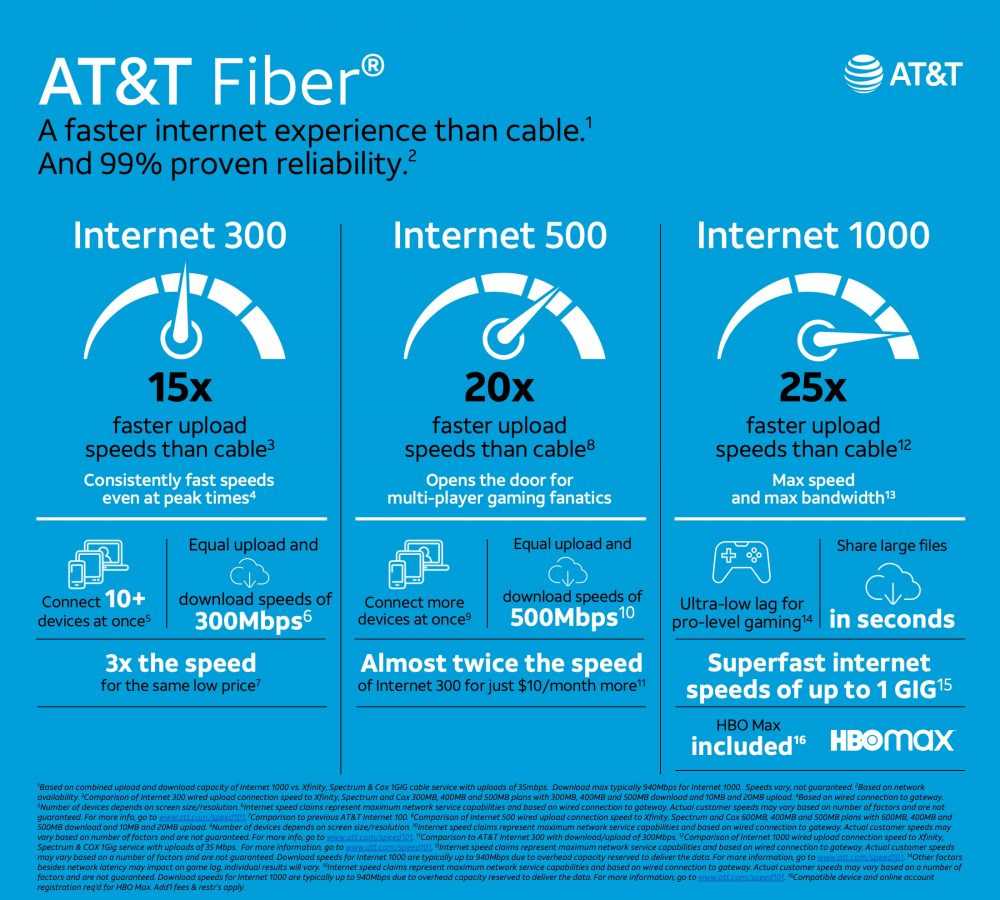 AT&T Fiber — один из самых популярных провайдеров гигабитного Интернета в США. Он обеспечивает скорость до 5 Гбит/с и не имеет ограничений по объему данных. AT&T Fiber также известна своим надежным обслуживанием и конкурентоспособными ценами.