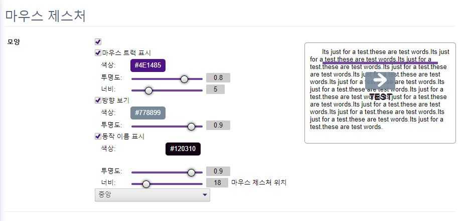 Вы можете включать и отключать значки по умолчанию для жестов мыши, а также отображать треки, направления, названия действий и многое другое. Вы также можете установить цвет, непрозрачность и ширину. Если вы включите отображение дорожки при перемещении и перетаскивании мыши, вы можете отметить трассировку фиолетовым цветом, как показано выше.