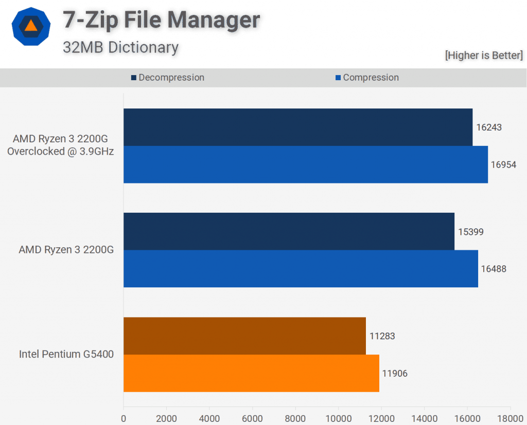 Для сжатия и распаковки архивов четыре ядра Ryzen лучше, чем два ядра Intel с Hyper-Threading, почти на 40%, что впечатляет.