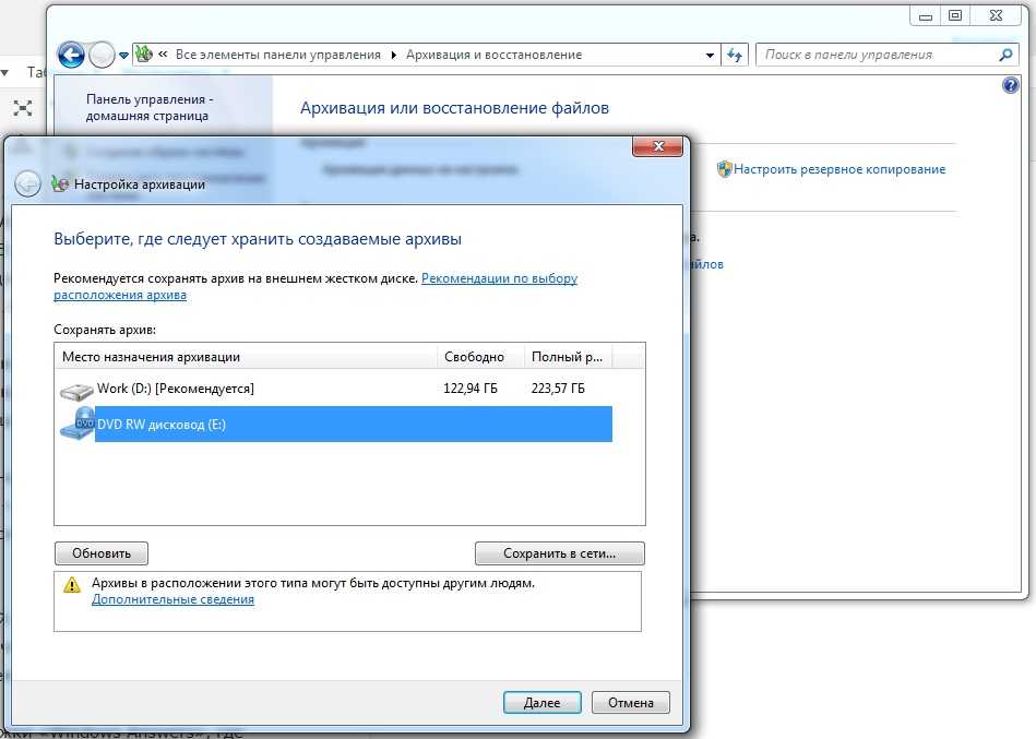 Архивация системы в Windows 7Как решить вщзникшую проблему?