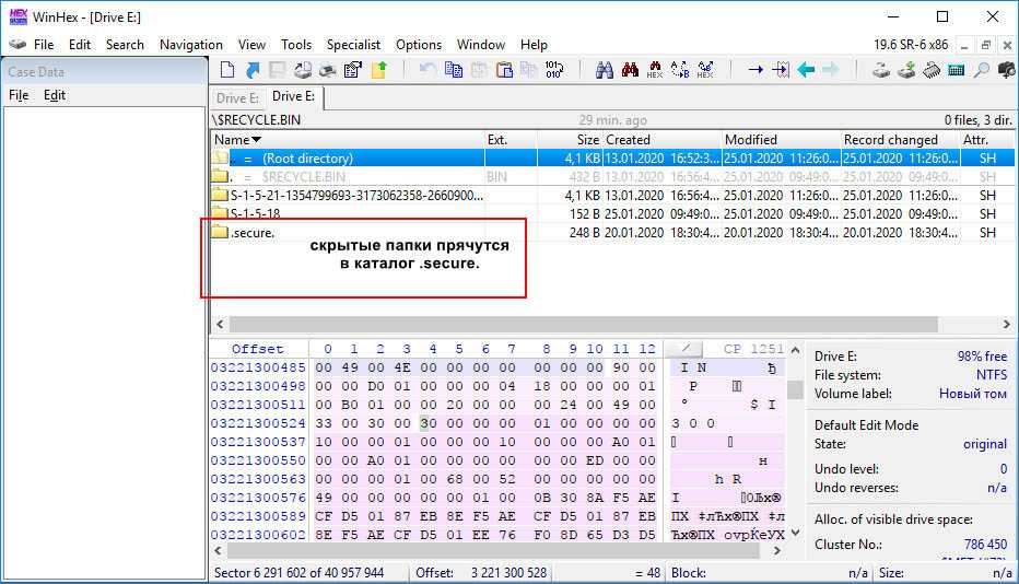Открываем диск программой WinHex и переходим в каталог. Интересует папка: C:Winmend