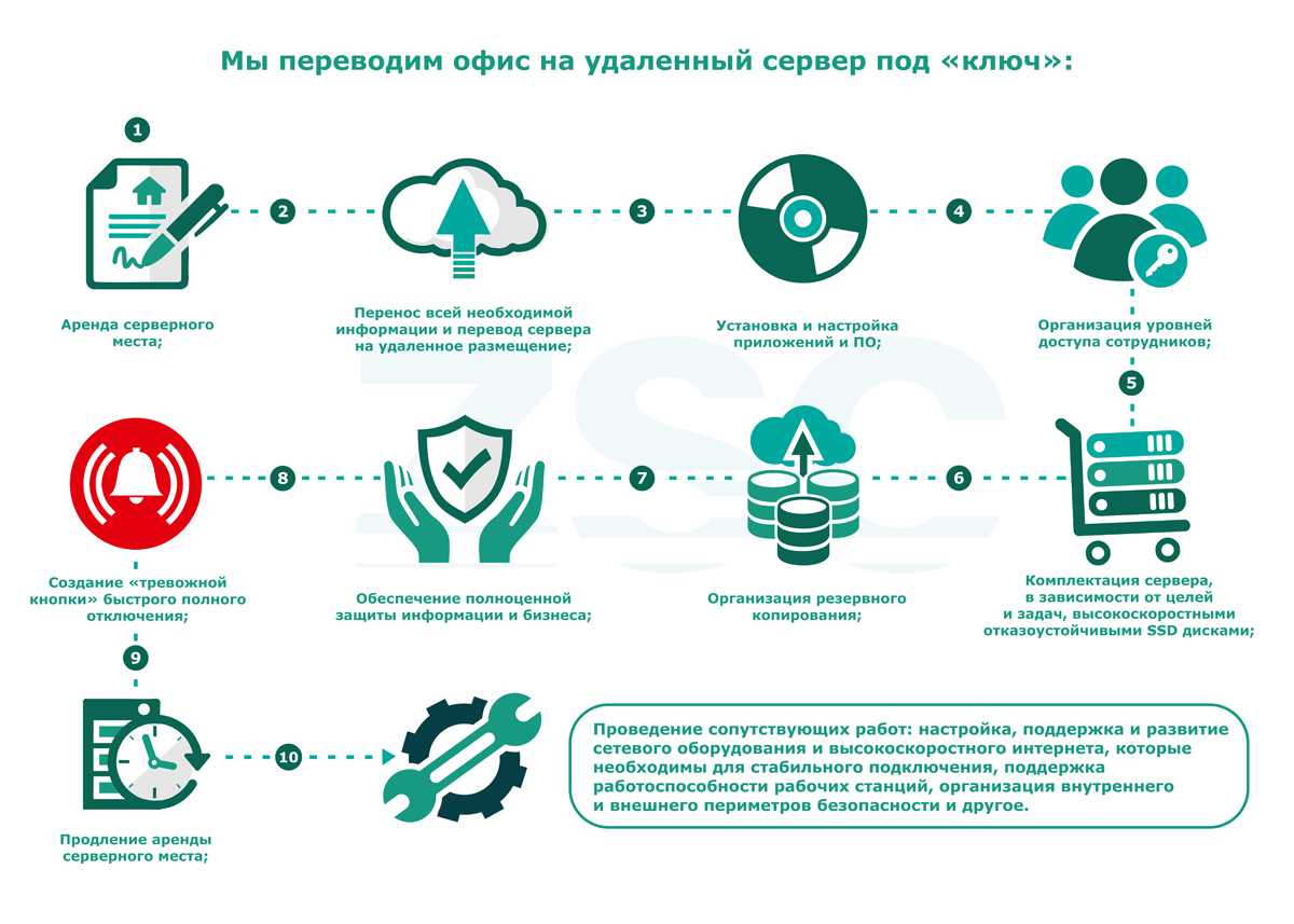 Мы переводим офис на удаленный сервер под «ключ». То есть, берем на себя все этапы этого перехода: