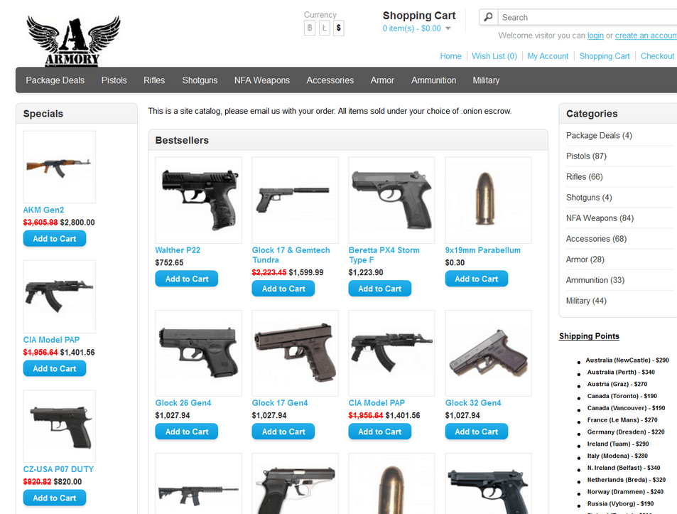 Cуществует ещё более глубокое и опасное место — так называемая тёмная сеть (Dark Web). Там торгуются запрещенные вещества, оружие, фальшивые деньги, украденные карточки, поддельные степени учёности или даже паспорта, клонированные дебетовые карты, инструменты для взлома сейфов и даже тяжёлое вооружение.