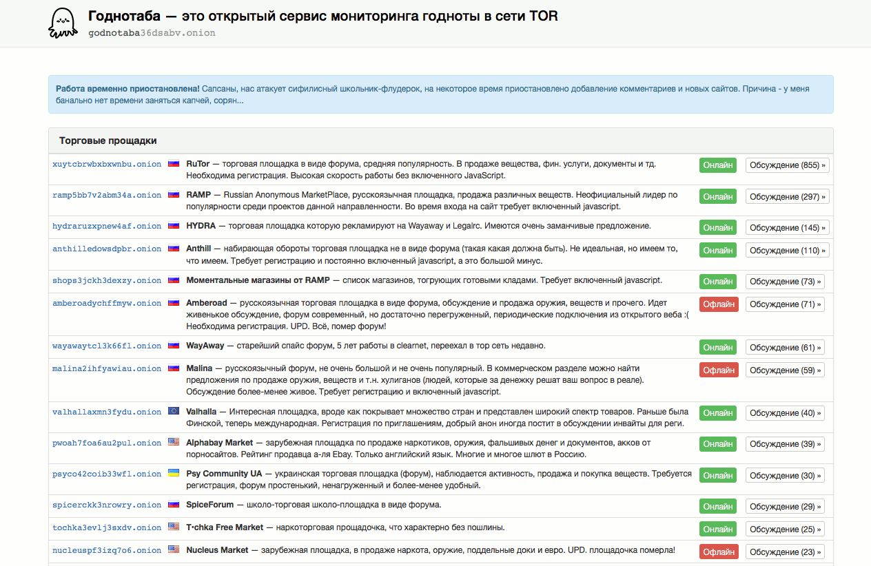 Нужно отметить, что часть ссылок на ресурсы Темного Интернета может не открыться. Это вполне нормально, не стоит удивляться. Это не обычная сеть, здесь не все работает так гладко как вы привыкли.