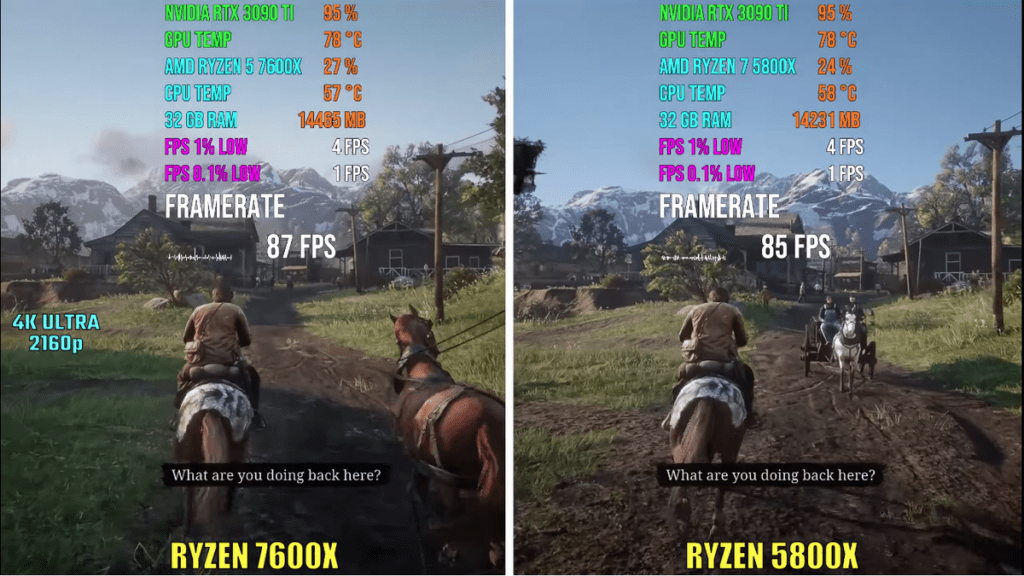 Чтобы немного отвлечься от вездесущности процессора, мы используем еще два «общих» стенда, во-первых, Red Dead Redemption 2 от Rockstar Games. Там игра была настроена на Vulkan со всеми деталями до максимума сначала в 1080p, а затем в 2160p, и наш Asus TUF RTX 3080 Gaming OC, очевидно, очень помог.