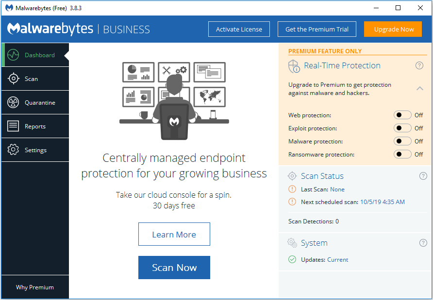 1. У Malwarebytes есть бесплатная версия. Кроме того, Malwarebytes предоставляет вам пробную версию полной версии после загрузки и установки программного обеспечения.