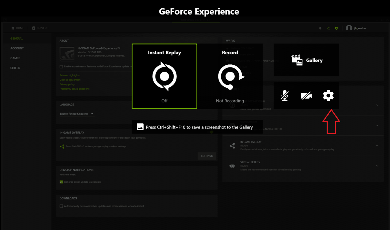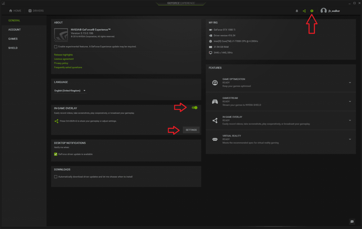 В случае NVIDIA запись экрана является неотъемлемой частью приложения GeForce Experience компании, включенного в ее графические драйверы. Вы можете включить эту функцию, открыв приложение GeForce Experience и перейдя на страницу настроек. Найдите панель «In-Game Overlay» и включите ее.