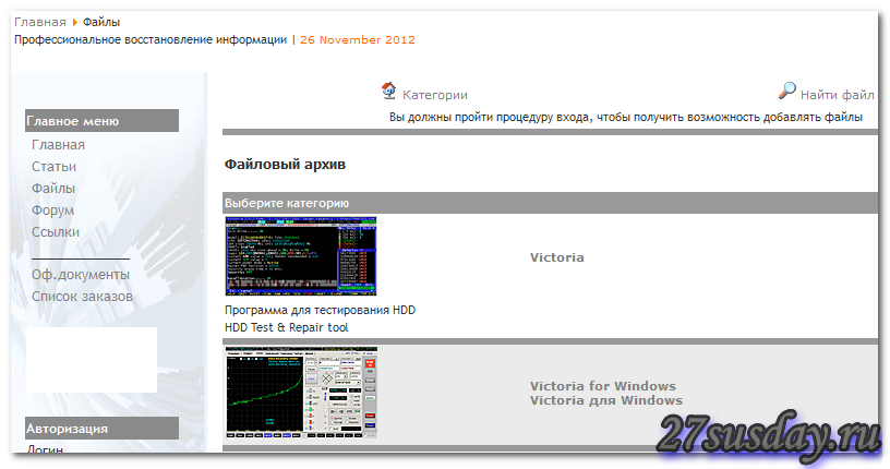 Или, можно скачать Викторию – уже для Windows (начиная от версии 4.0): http://www.hdd-911.com/index.php. Идем в раздел «Файлы»: