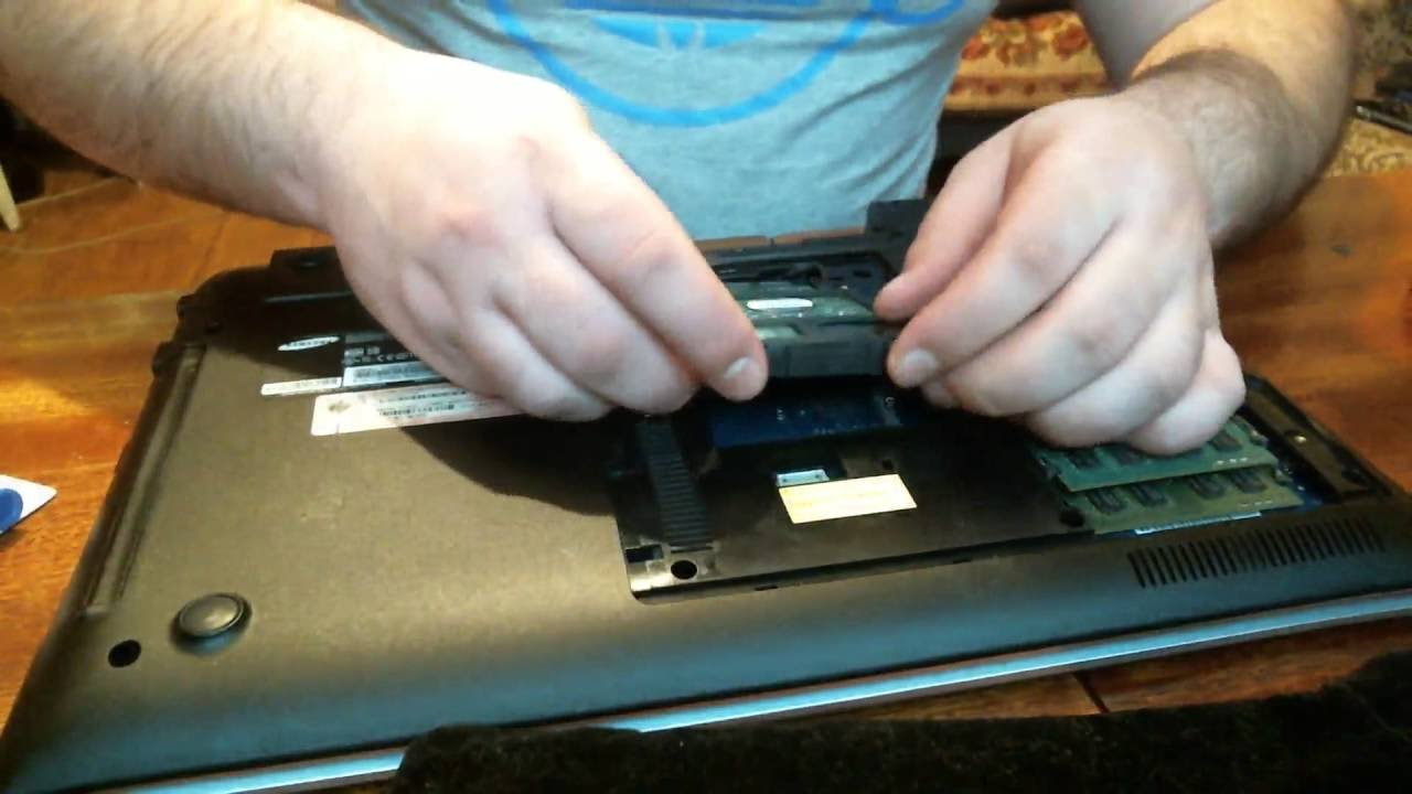 Посмотрите видео инструкции о том, как разобрать ваш ноутбук и заменить диск (в сети таких немало, если нет конкретно на вашу модель — смотрите похожую). Во многих моделях ноутбуков замена диска — несложная процедура, требующая открутить лишь пару винтиков на нижней панели. В других требуется полностью снять нижнюю крышку, что тоже не очень сложно. В отдельных редких случаях требуется более геморройная процедура разборки ноутбука. Изучите эту тему заранее, чтобы не было сюрпризов.