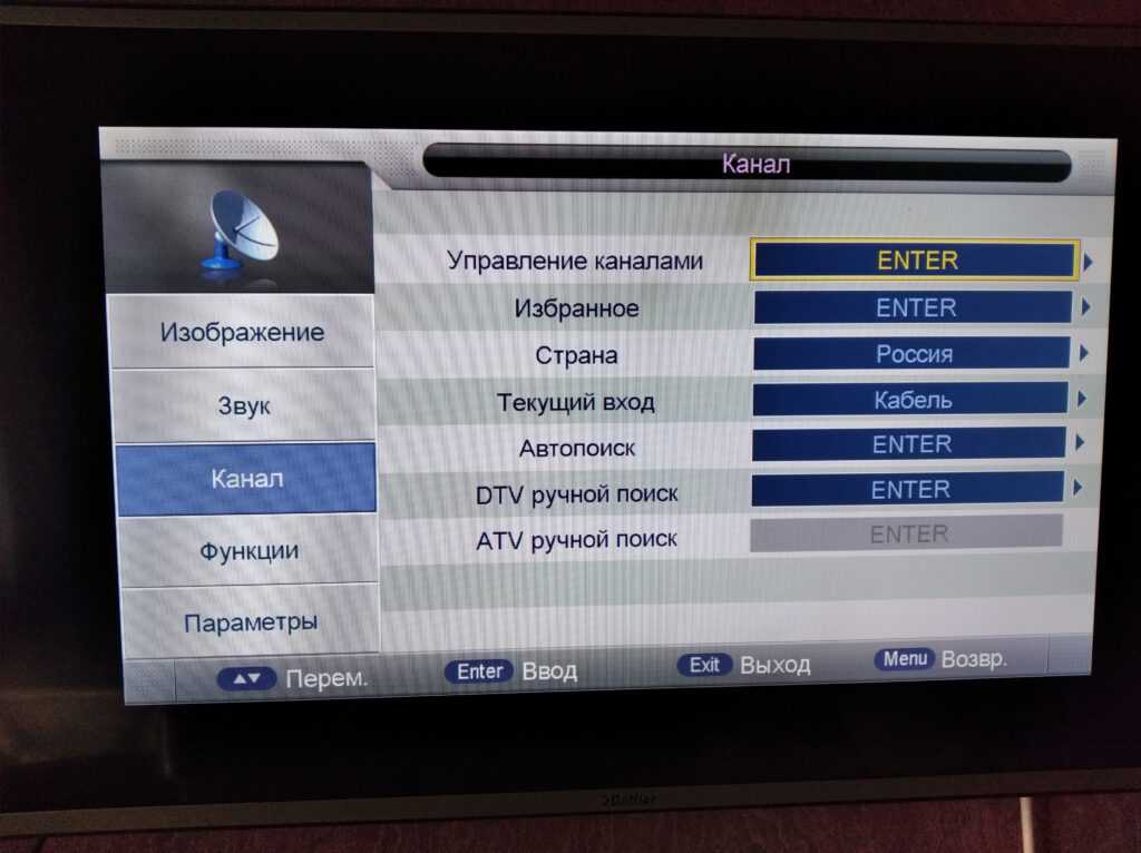 Кнопками вверх, вниз выбираем пункт Канал.