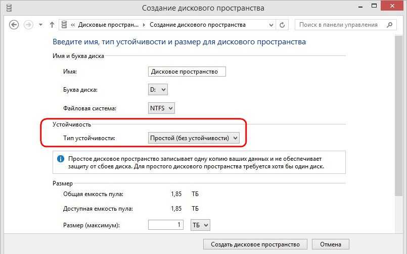 Тип устойчивости – это функционал массива, аналог той или иной конфигурации RAID. Технология предлагает нам 4 таких типа.