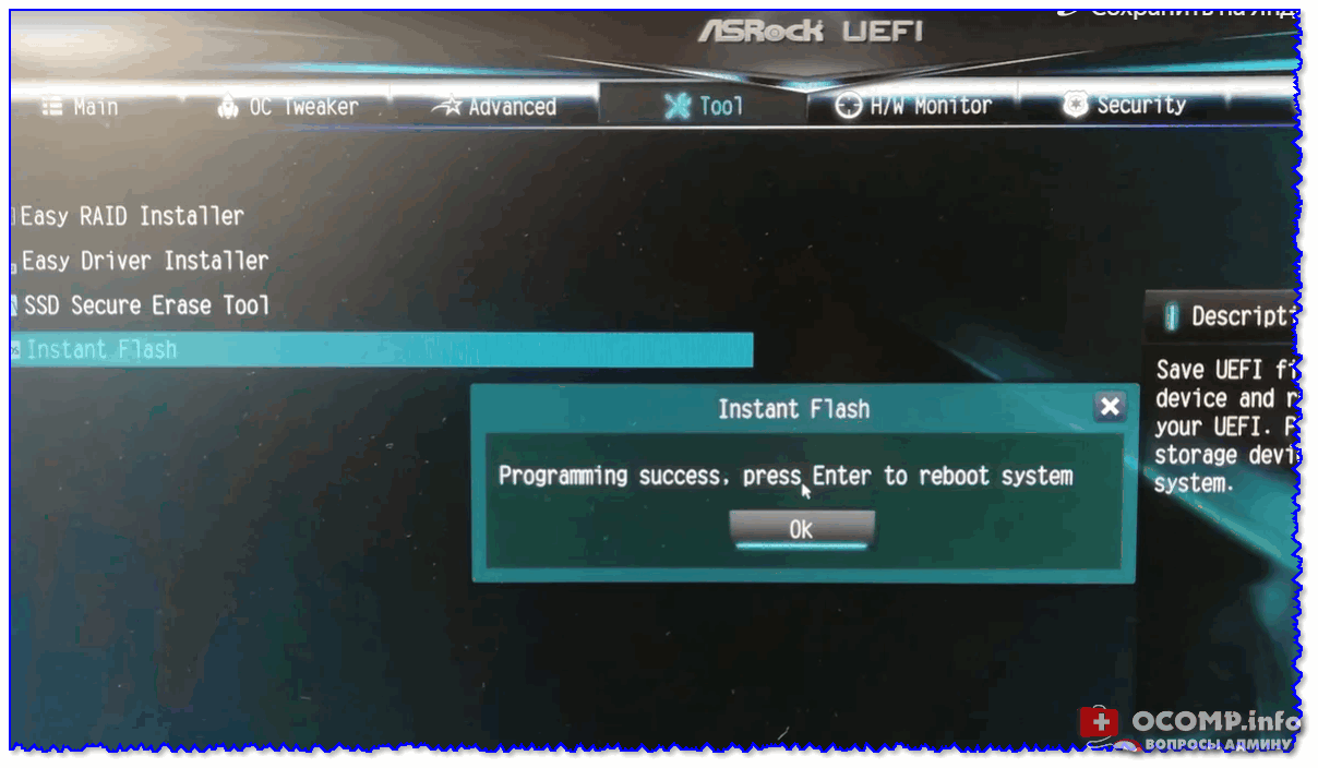После того как отработает asrock обновление bios, вас попросят перезагрузиться