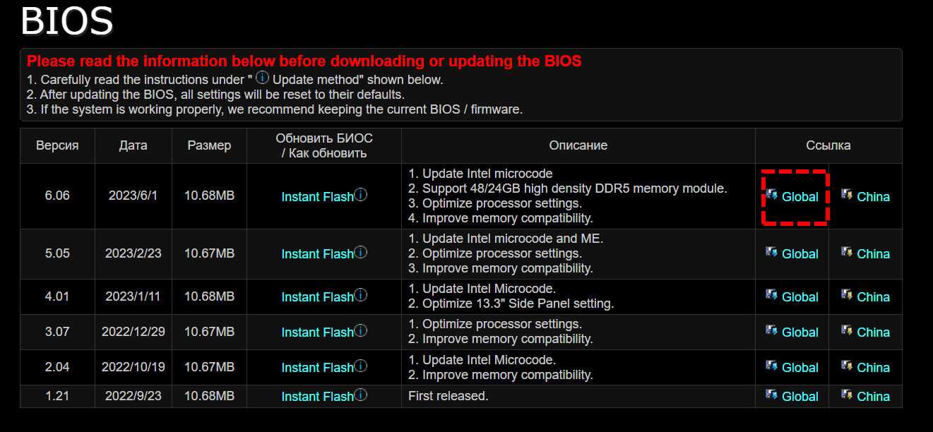 Также рекомендуется сделать резервную копию текущего биоса перед обновлением, чтобы можно было восстановиться в случае возникновения проблем.