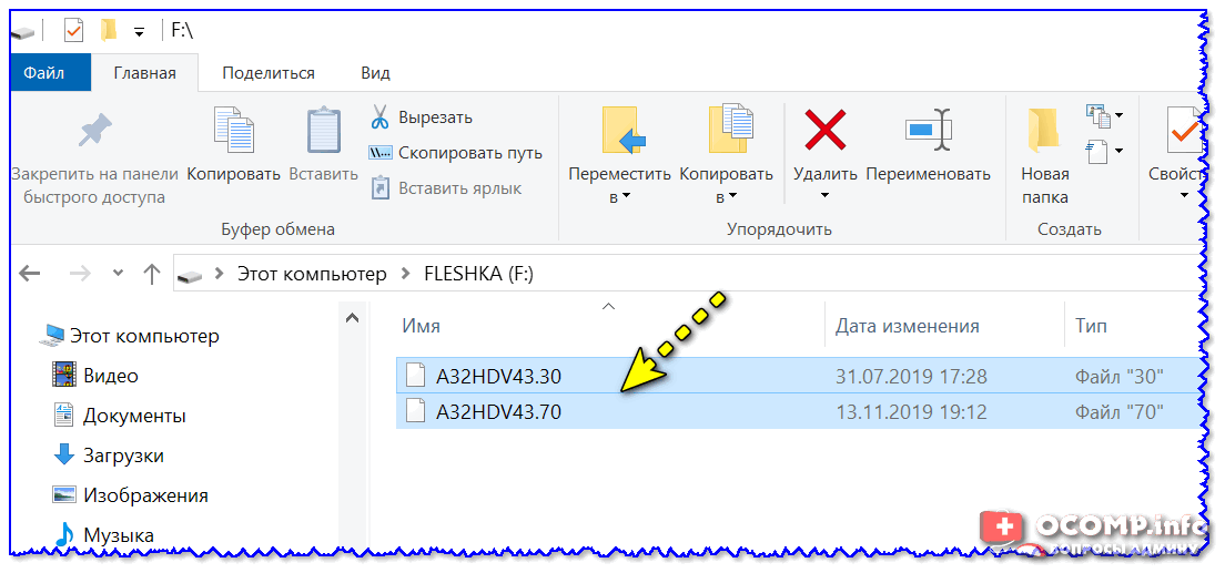 - Скачайте файлы с новой прошивкой на компьютер из интернета и скопируйте их на флешку.