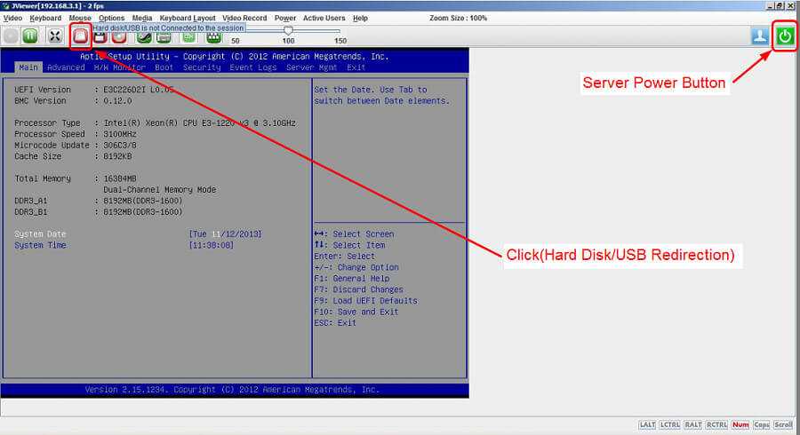 и нажимаем кнопку для перенаправления вашей флешки в удаленный сервер, жмем Hard Disk/USB Redirection