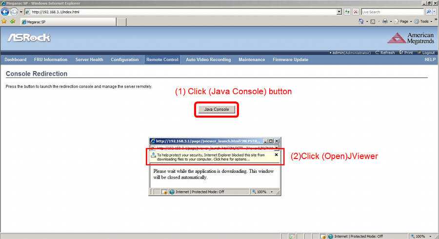 Нажмите «Java Console» > «Open» чтобы открыть JViewer