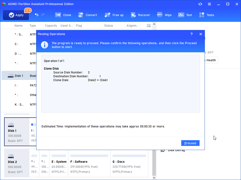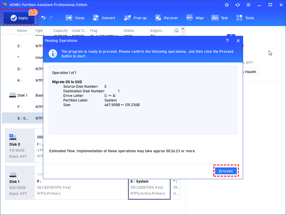 Step 6. Click Apply and then Proceed to execute disk cloning.
