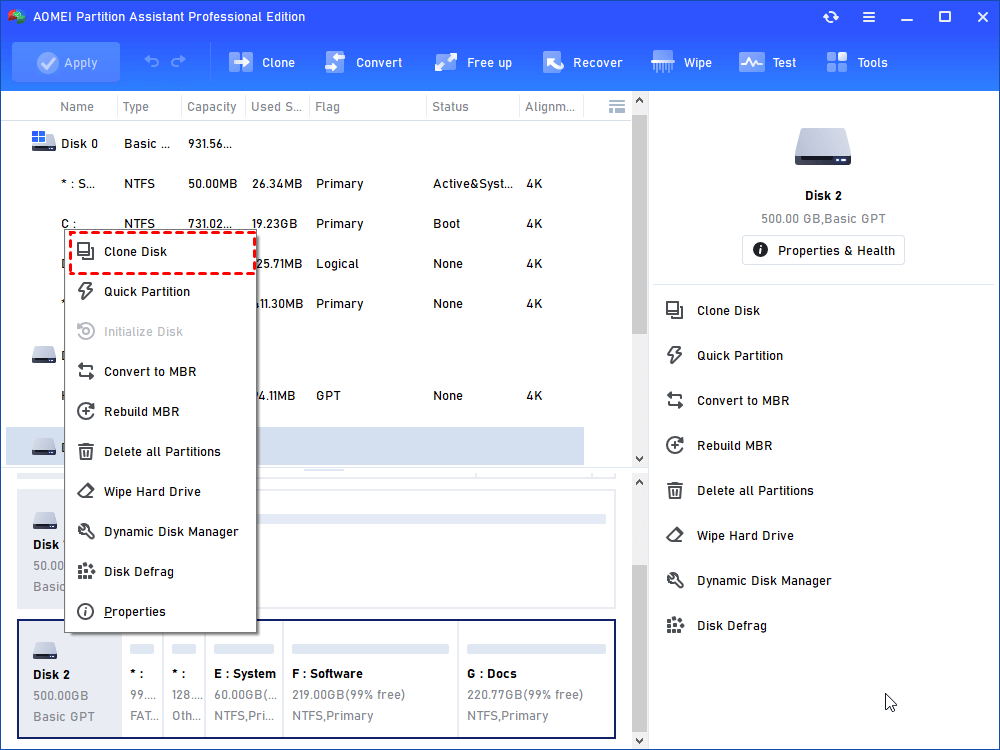 Step 2. In the main interface, click “Clone Disk” in the right menu.