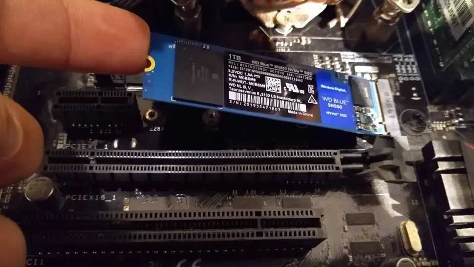 Как можно увидеть на изображении выше, слот довольно неудобно располагается между видеокартой и процессором. Чтобы установить в него накопитель, нужно извлечь видеокарту.