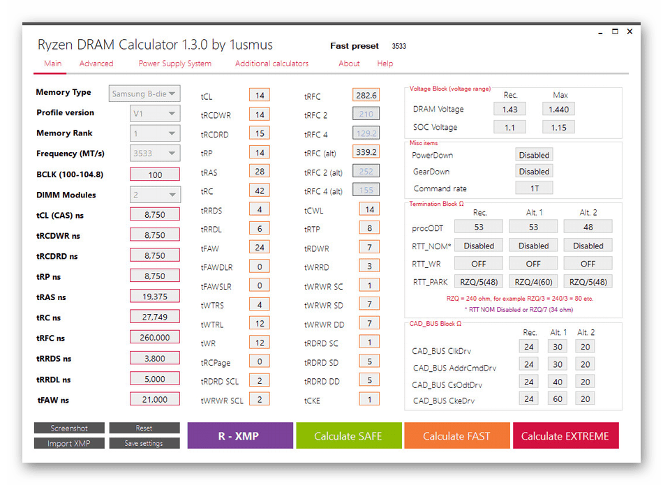 Внизу расположены кнопки, с помощью которых запускается расчёт требуемого режима разгона памяти.