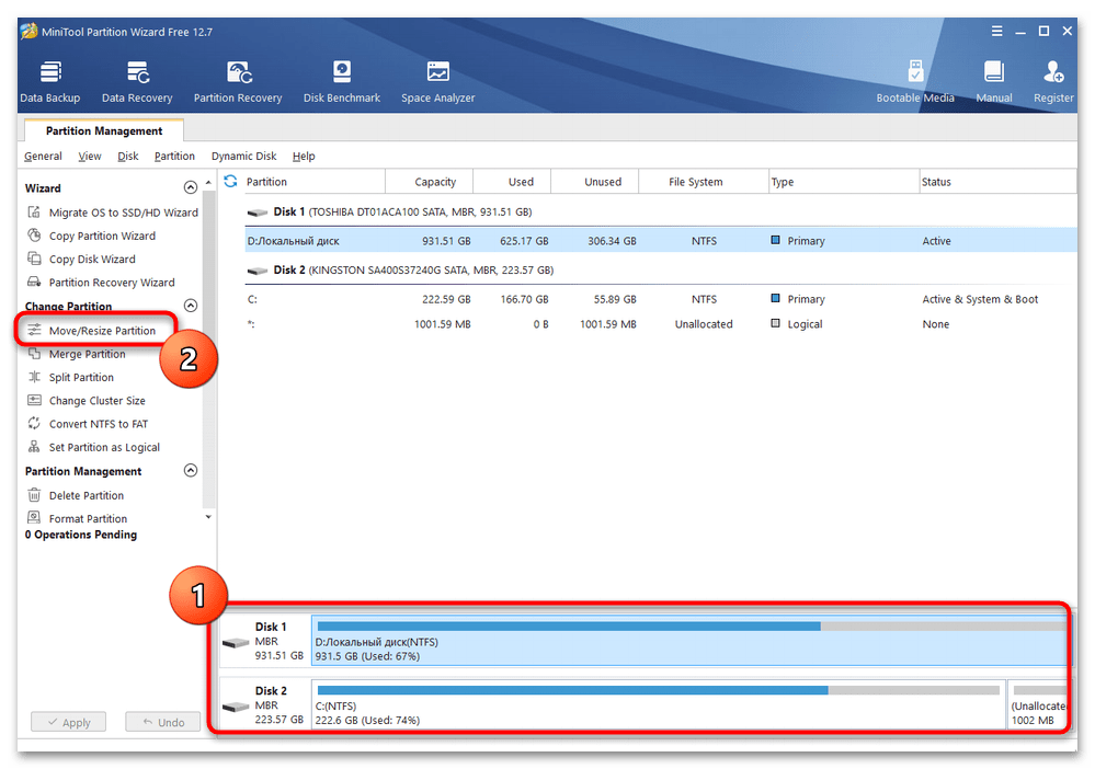Стороннее программное обеспечение не имеет таких ограничений, и сделать это намного проще в несколько кликов. Посмотрим, как объединить разделы в Windows 10/8/7 с каждым инструментом.