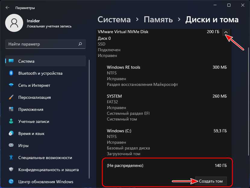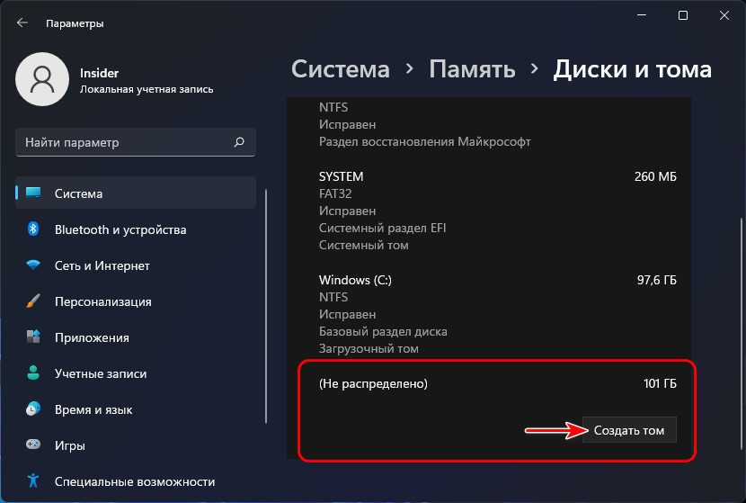 Теперь у нас образовалась на диске нераспределённое пространство. Жмём для него кнопку «Создать том».