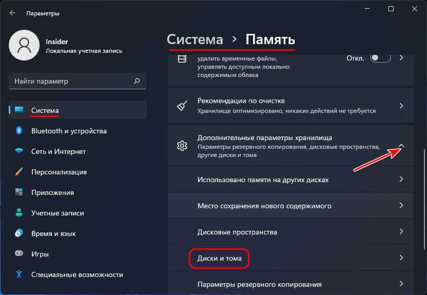 Для решения поставленной задачи в Windows 11 можно использовать современный аналог системного «Управления дисками» — интегрированные в системное приложение «Параметры» настройки по работе с дисковым пространством. Они, увы, не предусматривают карту дисков, т.е. схему дисков и разделов для визуальной оценки всего дискового хранилища компьютера, но в каких-то моментах современные настройки проще и удобнее, чем классическая утилита diskmgmt.msc.