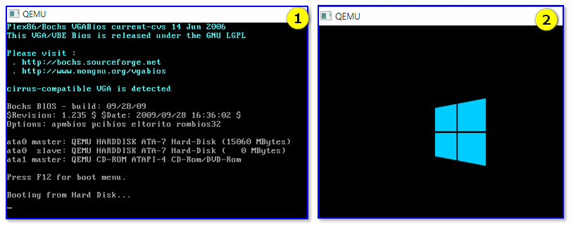 После, программа автоматически воссоздаст «реальные» условия работы флешки и попробует произвести с нее загрузку ОС. Если с накопителем все в порядке — должны увидеть появившейся логотип Windows (как у меня на скрине ниже).