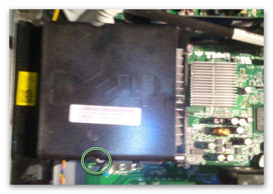 Выкрутить болты на корпусе. Для удобства в понимании они показаны на изображении. Следует иметь в виду, что выкручивать нужно именно правую крышку (если смотреть сзади, соответственно левую – если смотреть на системный блок спереди). Противоположная зафиксирована сильнее (нередко даже припаяна к корпусу).