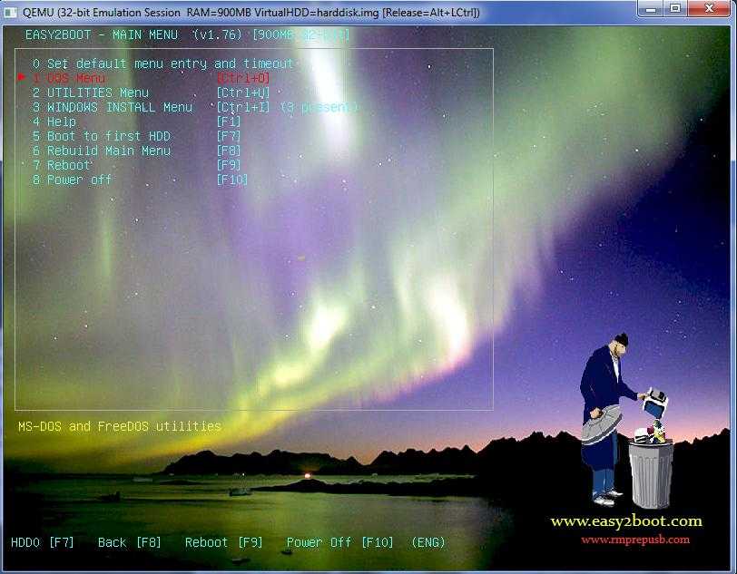 . Через пару минут ваш мультизагрузочный накопитель будет готов. Проверить его работоспособность можно во встроенном эмуляторе RMPrepUSB