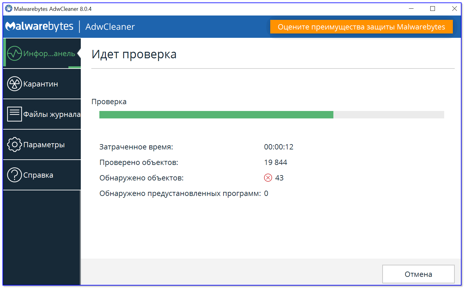 Кстати, после сканирования системы и обнаружении угроз — для их ликвидации AdwCleaner потребуется перезагрузить ваш ПК (поэтому перед началом «лечения ОС» сохраните и закройте все редактируемые документы и пр.) .