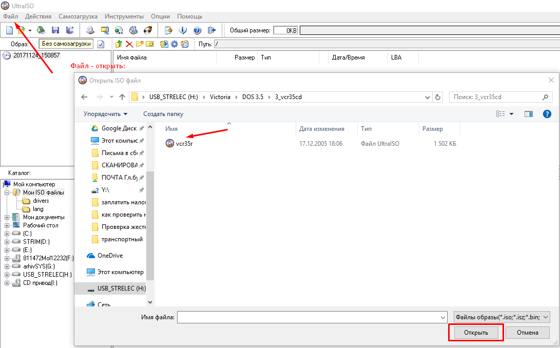 Программа Victoria идет в составе большинства так называемых аварийных дисков, на которых есть различные полезные программы. Можно сразу скачать такой диск в интернете, а можно скачать программу в виде образа отдельно. При записи образа на флешку или диск мы можем после запускать компьютер с этого диска или флешки. Так же нам понадобится программа UltraIso, с помощью нее мы сделаем загрузочную флешку. Открываем программу UltraIso, через меню «Файл» — «Открыть» находим файл с образом нашей программы: