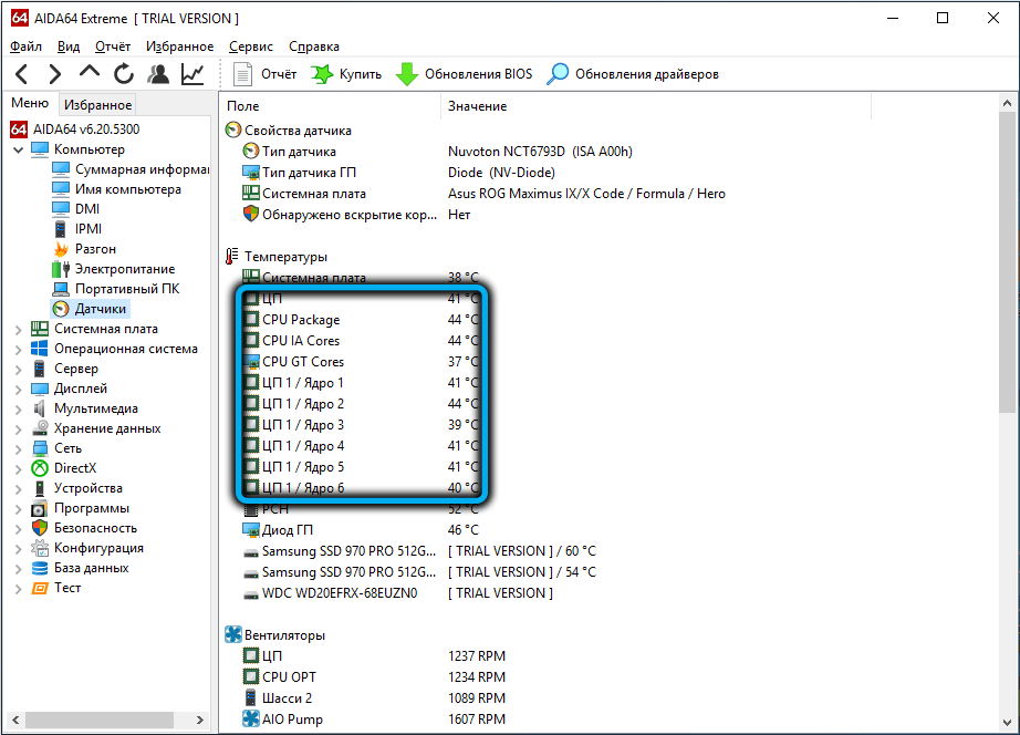 Конкретные температуры элементов можно увидеть в специализированном программном обеспечении по типу AIDA64. Полученные значения стоит сравнить с рекомендованными, после чего сделать вывод о необходимости вмешательства.