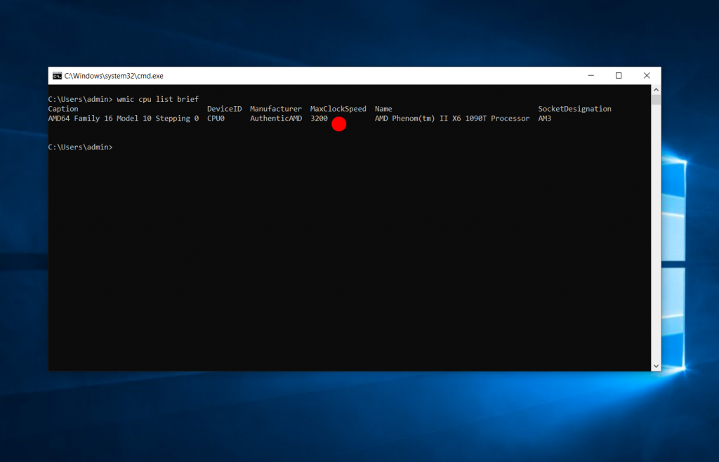 Здесь базовая частота процессора будет отображаться в поле MaxCpuSpeed. Также команда выведет семейство процессора, сокет и другую дополнительную информацию.