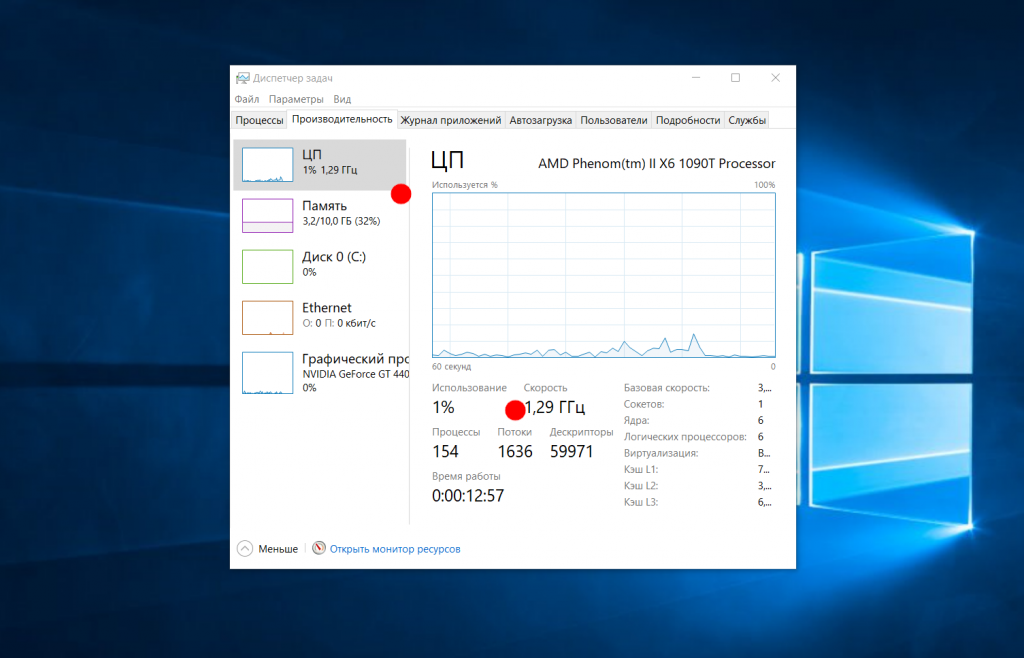 Напротив пункта базовая скорость указывается максимальная рабочая частота, которую процессор может брать автоматически. Для моего процессора это 3.2 ГГц.