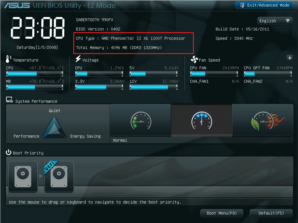 В новом типе БИОС, UEFI, предоставляется полная информация о памяти (тип, размер, частота).