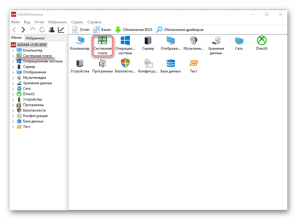- Перейдите в «Системную плату», при помощи специальной иконки в главном окне программы или левом меню.