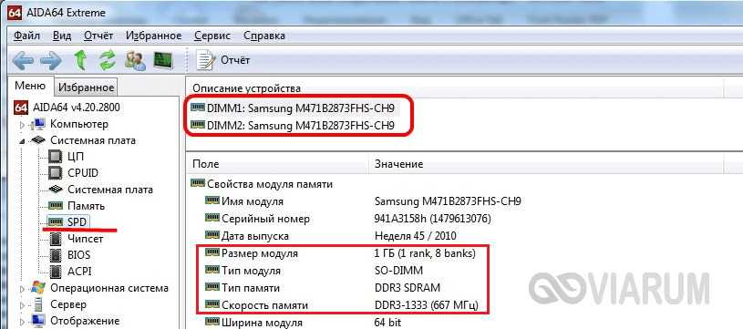 . Сведения о памяти в этой программе содержатся в меню Системная плата – SPD