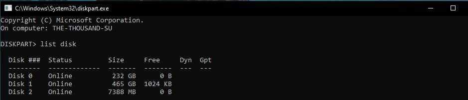 - Type the following command to confirm the drive is still selected and press Enter: list disk