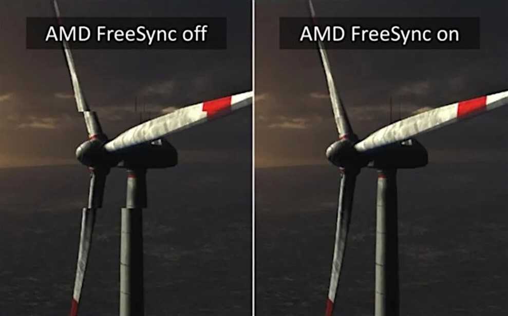 Давайте в двух словах разберёмся, как проверить, работает ли AMD FreeSync. Можно воспользоваться тестом от AMD FreeSync Windmill Demo. Это мельница с вращающимися лопастями. Именно разрывы без включения FreeSync и V-Sync очень заметны и «режут» глаза.
