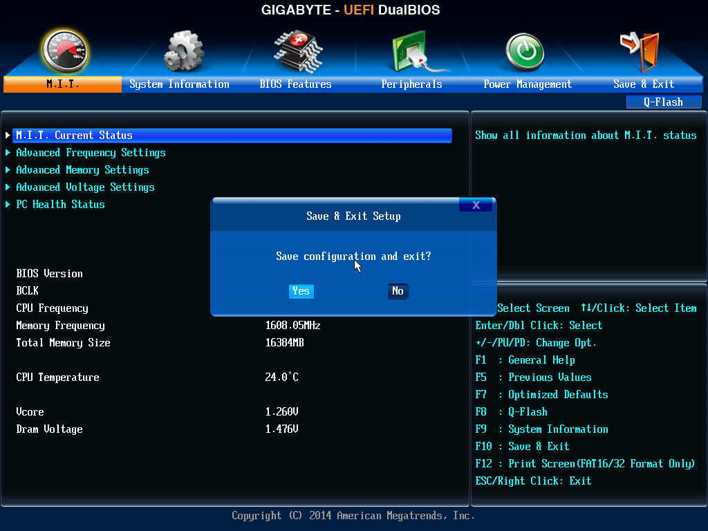 Выйти и перезагрузить компьютер для сохранения настроек можно при помощи клавиши F10.